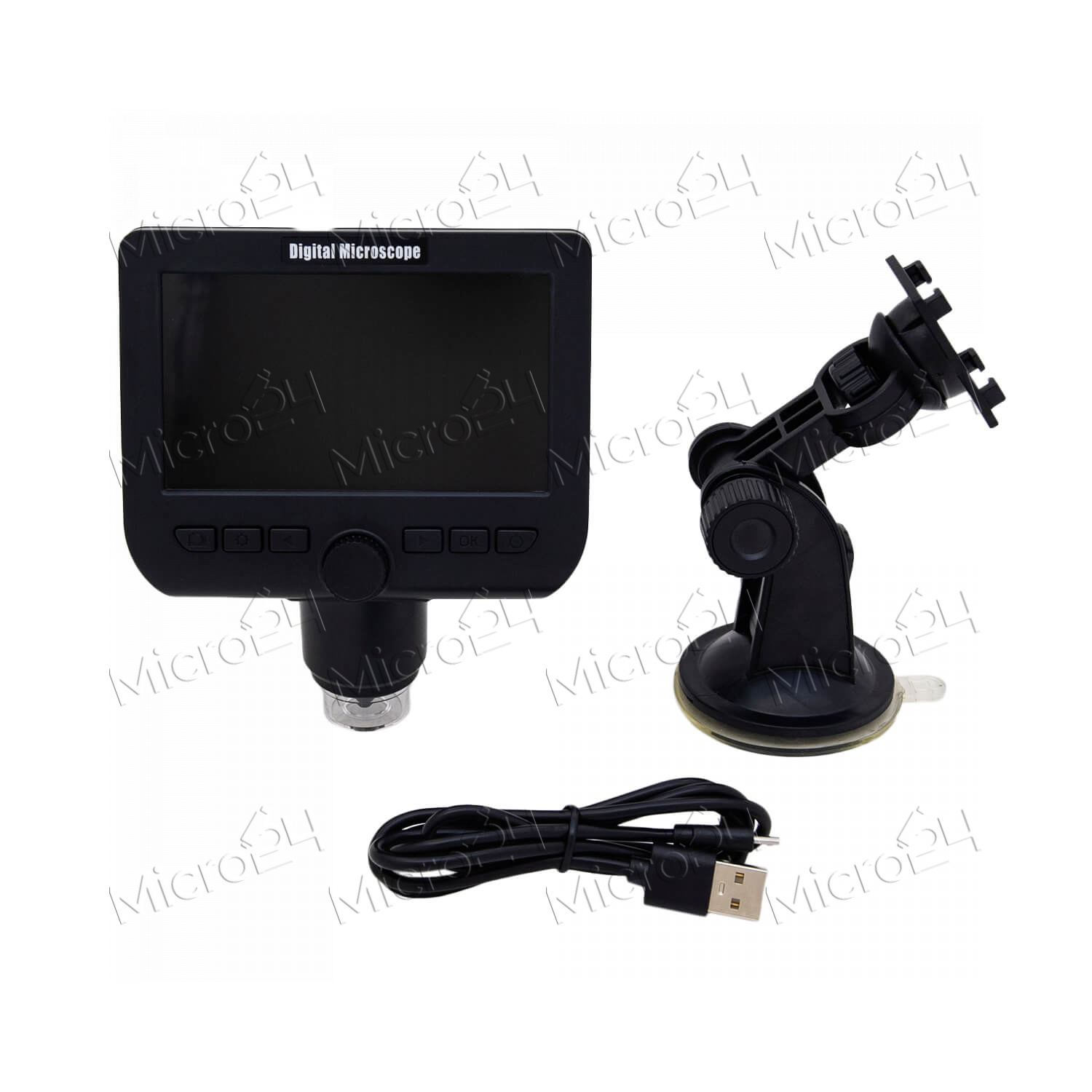 Микроскоп цифровой с экраном Inskam 317 с подставкой на присоске (Wi-Fi, 1080 P, 1000 крат) – оптический прибор с максимальным увеличением 1000 крат. Оснащен цифровым дисплеем диагональю 4,3 дюйма, есть подсветка из 8 светодиодов. Микроскоп можно синхронизировать с ноутбуком или ПК по WI-FI. Это позволит просматривать увеличенное изображение на большом экране в разрешении 1080 P. Микроскоп закреплен на поворотном штативе, который фиксируется на поверхности с помощью присоски.